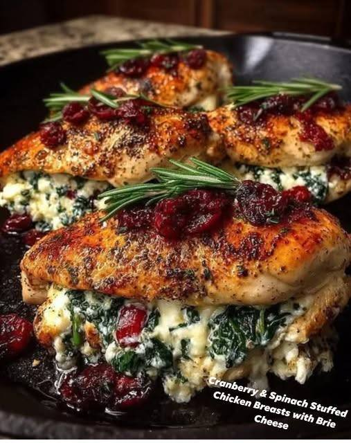 🥘 Cranberry & Spinach Stuffed Chicken Breasts